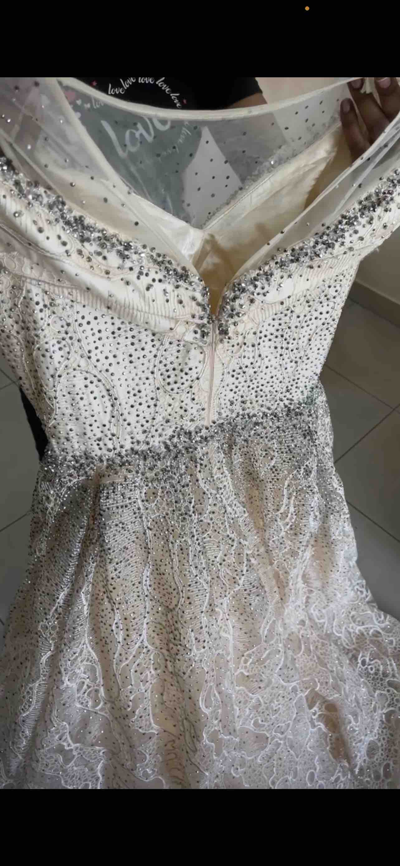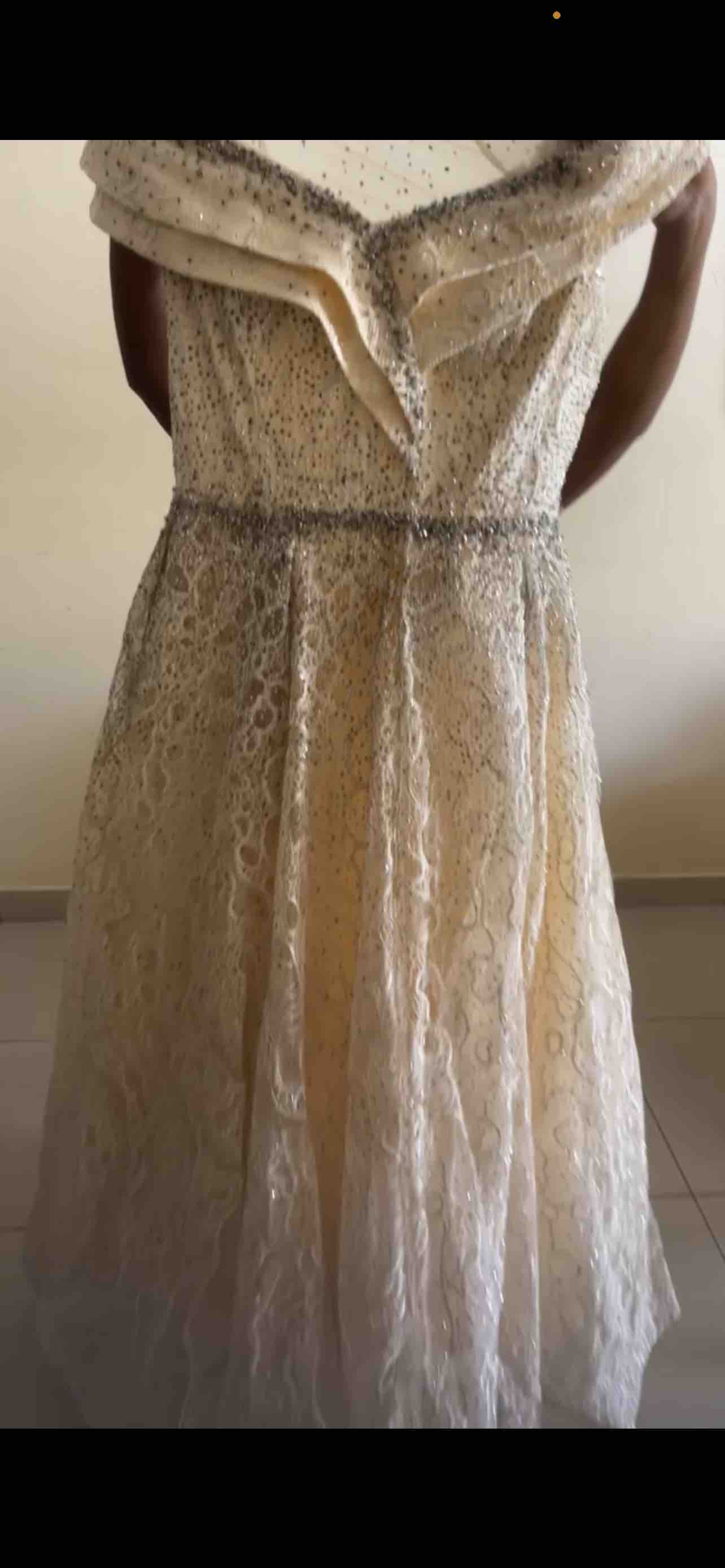 الفستان يجنن على الحقيقة اكثر و اكثر لونه يجنن قولد على بيج الفستان ملبوس 4 ساعات مناسب للحفلات الاعراس والخطبة واي من الحفلات سايز الفستان ميديم و زنه ثقيل من الشغل الي عليه و قصت الفستان كأنه سندريلا اذا تحبون يوصلكم لعند بيتكن او تقدرون انتو تستلمونه