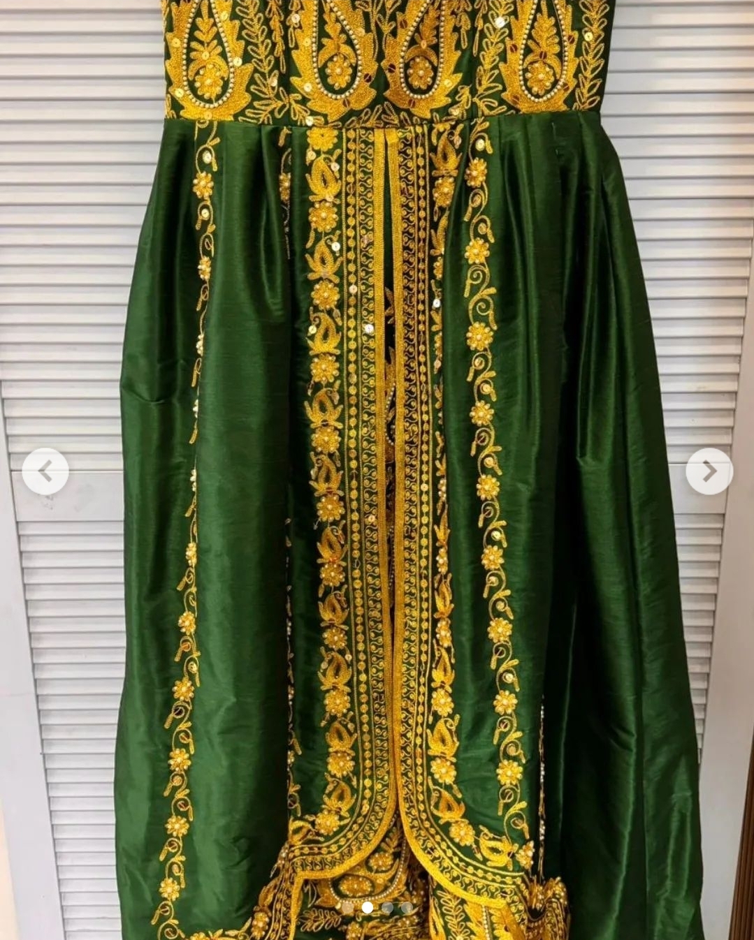 فستان ملجه اخضر لبسه واحده فقط مع حزام و طرحه تور مطرزه للبيع ٨٠ دينار قابل للتفاوض رقم التلفون: 32003393