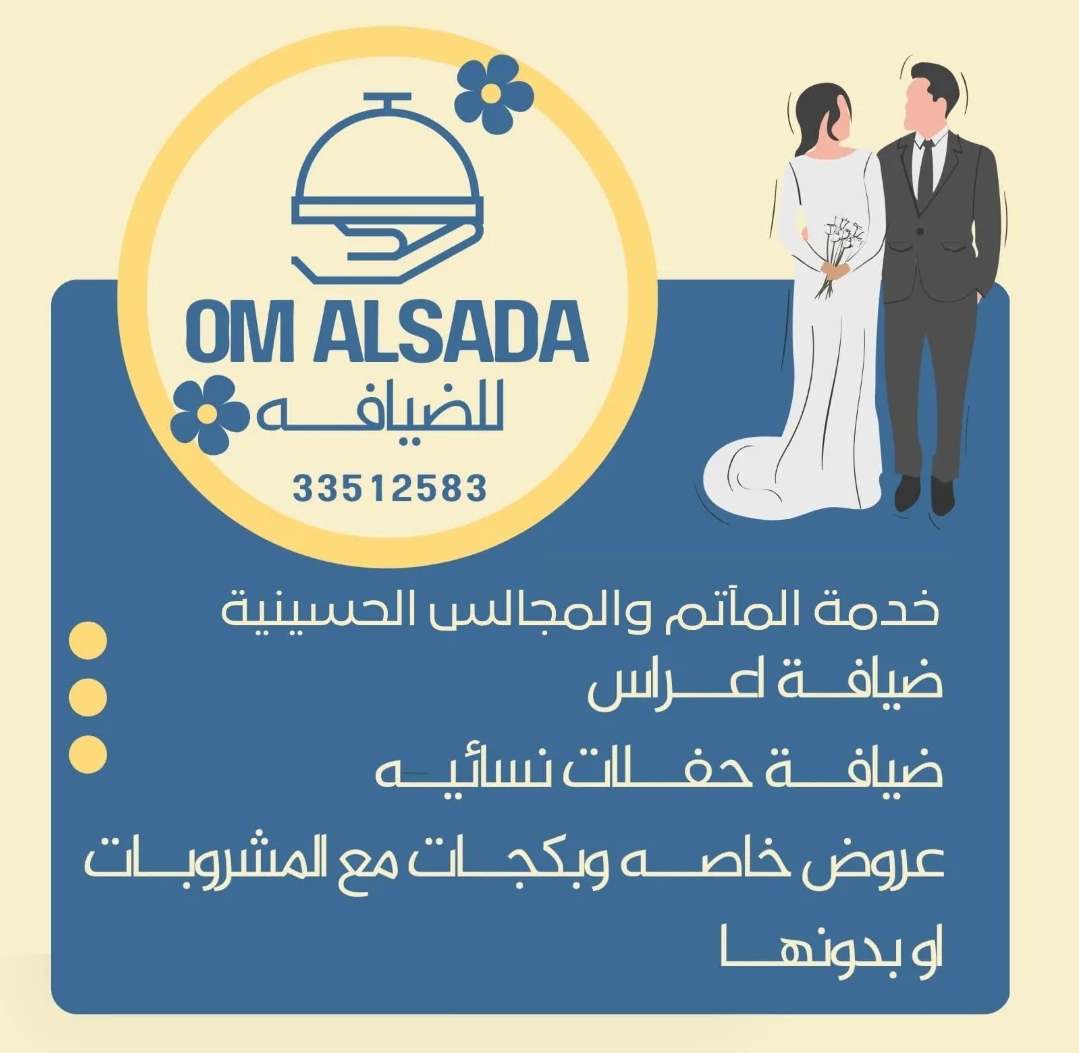 نقدم خدمات راقية ومميزة بأسعار مناسبة لضيافة الأفراح، التعازي الحفلات، وغيرها من المناسبات. للتواصل والاستفسار