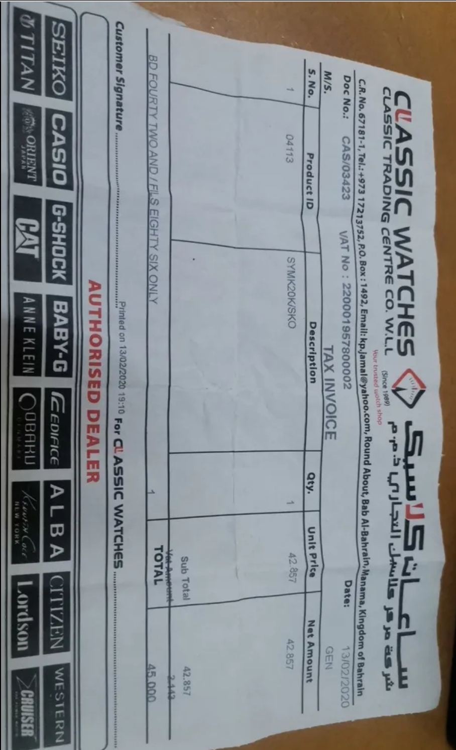 SEIKO 5 watch original with purchaseing receipt model 9N2123 water resistant St steel a very good condition.