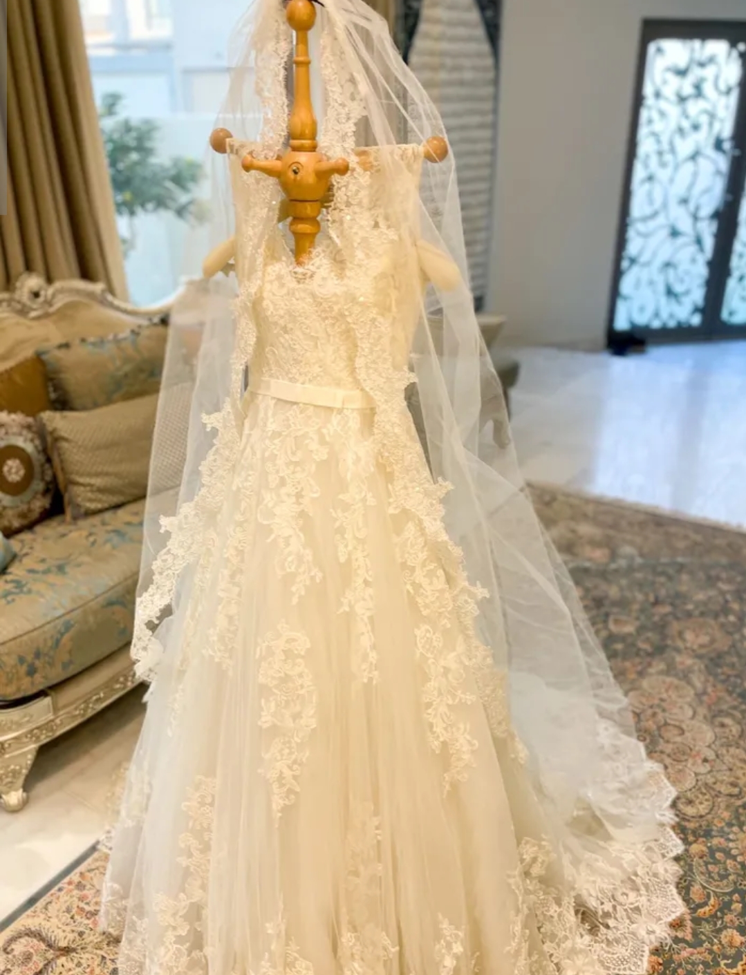 مستعمل لبسة واحدة الفستان مع الطرحة الشراء من مجمع العالي بسعر 800 دينار اللون اوف وايت مطرز بالدانتيل مرتب في اللبس ومميز