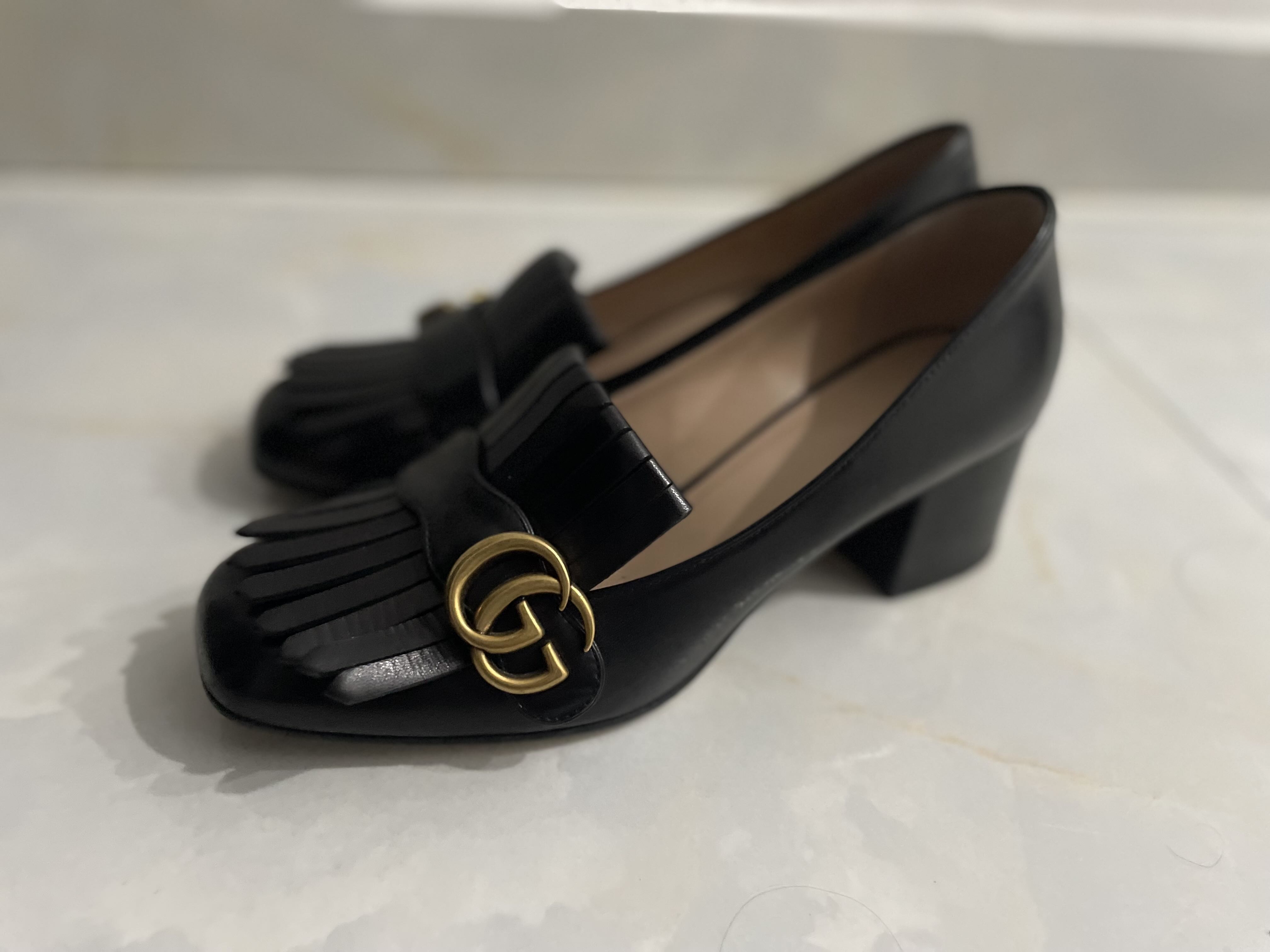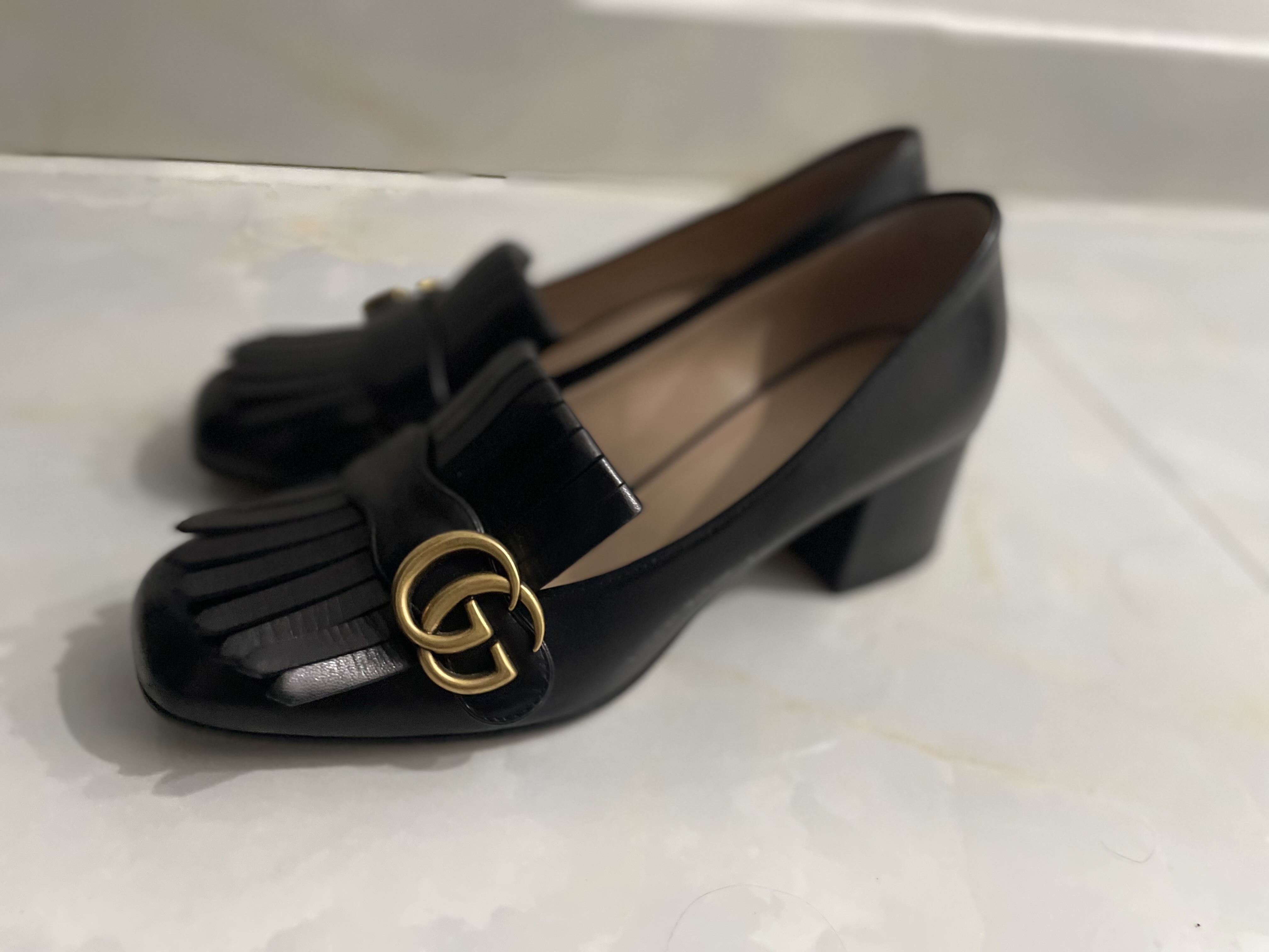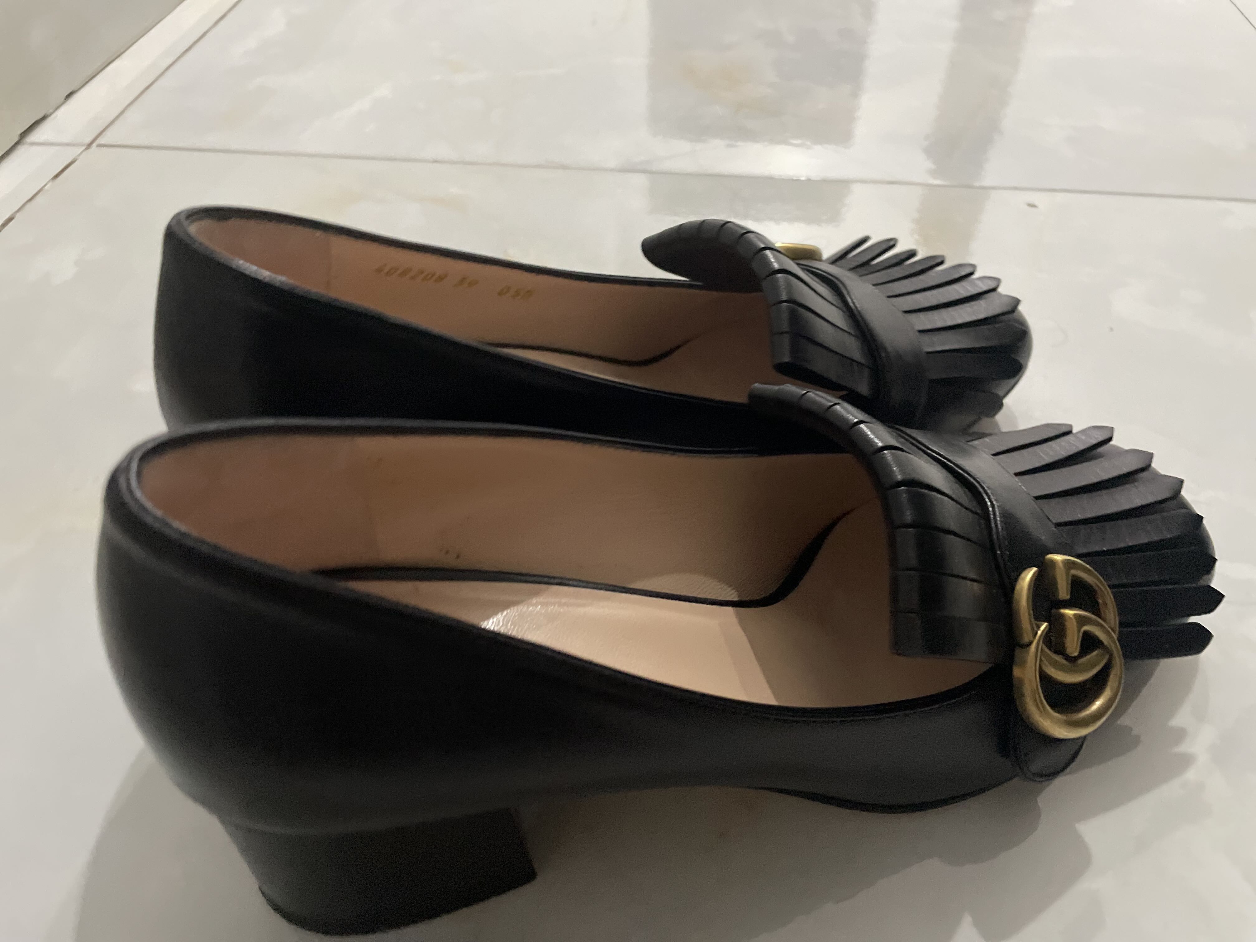 حذاء قوتشي فخم أسود ملبوس ثلاث لبسات نظيف و بحالة ممتازة جداً مقاس 39