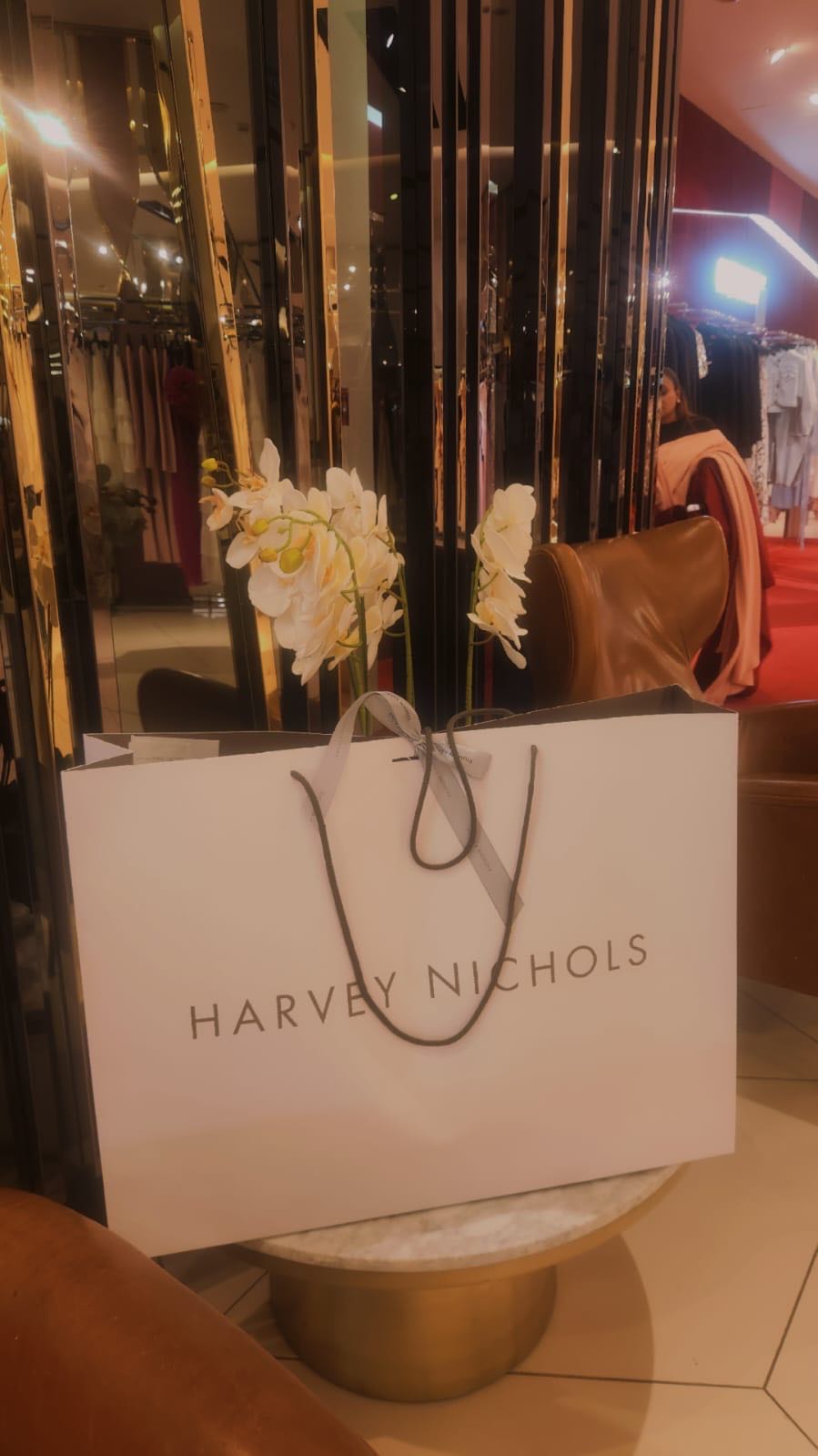 فستان مقاس 10 (S,M) كامل المرفقات مع كيس وتغليف harvey nichols avenues لبسة واحدة لمدة ساعة فقط