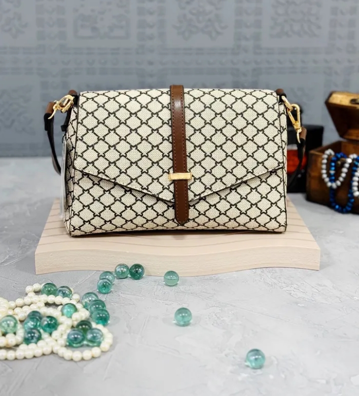 Model: Rima, Giovanni Italian design (Hands on video) Rima is a luxury compact brown and creamy with argyle pattern handbag. It’s multifunctional! So you can use it both in formal and informal occasions. The size of this bag is not that big but it’s incredibly spacious! Watch the video in the last slide and you’ll know what I mean "ريما" هي حقيبة يد فاخرة ذات لون بني وكريمي مع نمط أرجايل. "ريما" متعددة الوظائف! لذلك يمكنك استخدامه في المناسبات الرسمية وغير الرسمية. حجم هذه الحقيبة ليس كبيرًا