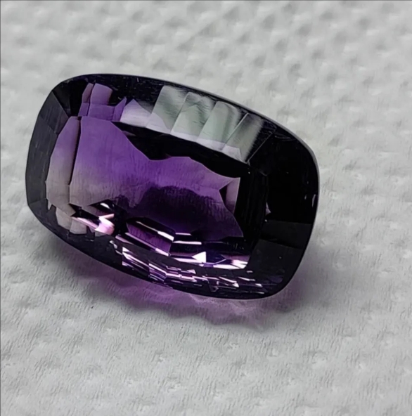 حجر أمتيست جمشت برازيلي طبيعي مع شهادة المختبر وزنه 27 قيراط natural brazilian amythest stone c concave cut 27 carat with lab certificate و, متوفر فيديو للحجر