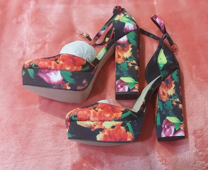 كعب عالي زهري أنيق من اسوس جديد، قياس الكعب ب UK 8 و EU 42 قياس الكعب 14 انش Very elegant flower High heel Brand new from Asos Size in UK 8 and in EU 42