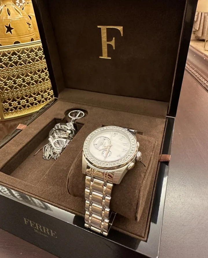 INFORMATION BRAND Ferre Milano GENDER Ladies MODEL FM1L007M0051 WATCH LABEL Swiss Made MOVEMENT Quartz CASE CASE SIZE 40 mm CASE THICKNESS 11 mm CASE MATERIAL Stainless Steel CASE SHAPE Round CASE BACK Solid BAND BAND MATERIAL Stainless Steel BAND TYPE Bracelet BAND COLOR Silver-tone BAND LENGTH 7 inches BAND WIDTH 20 mm