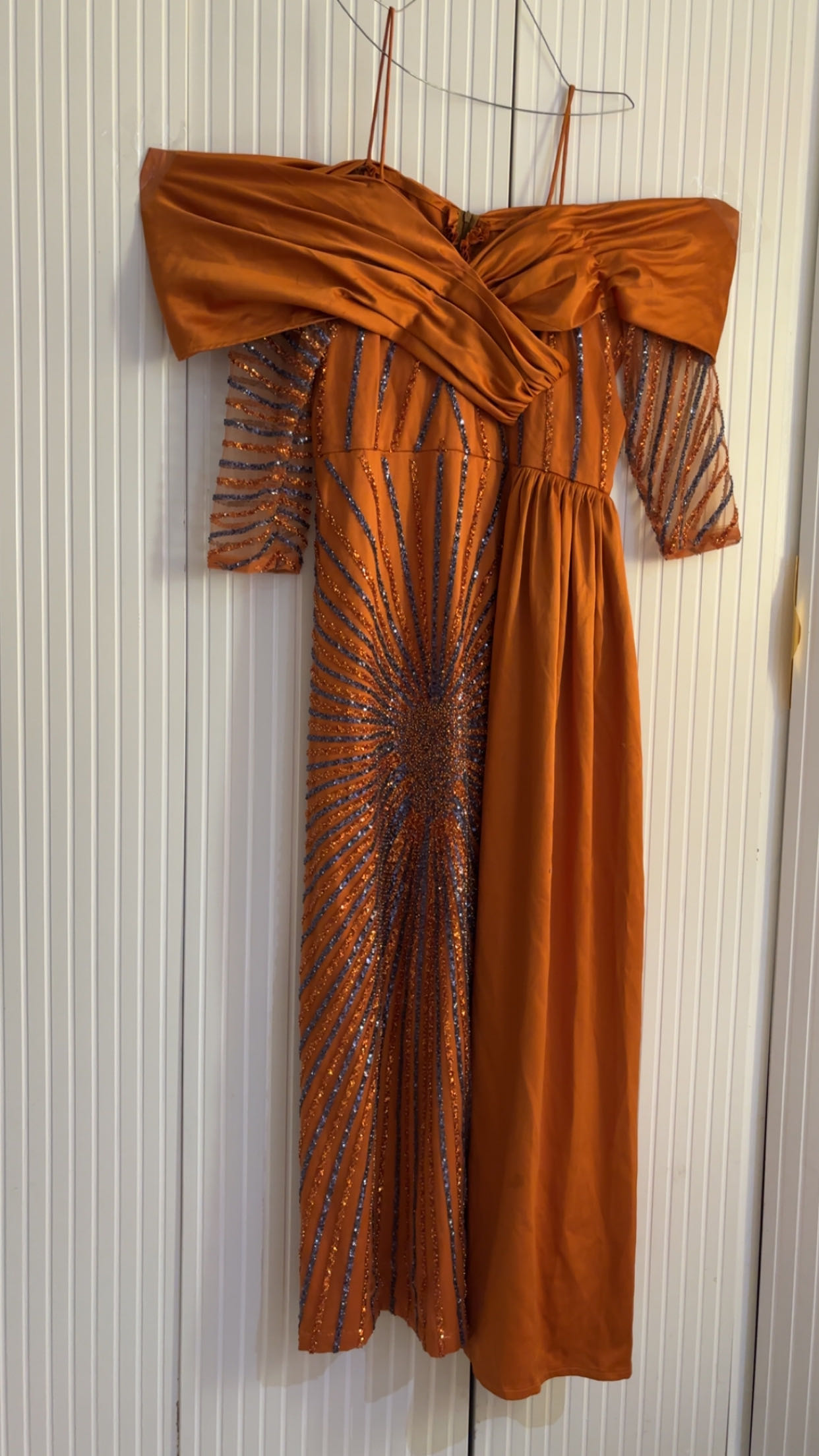 فستان سهره شك يدوي ويوجد فتحه من الجنب اليمين