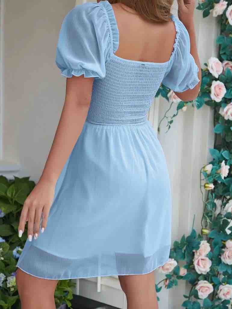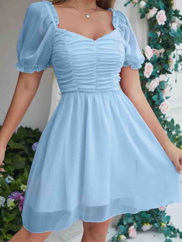 فستان بناتي سماوي قصير من شيء ان ناعمم تم لبسه مرة واحده فقططط المقاس: xs السعر:60